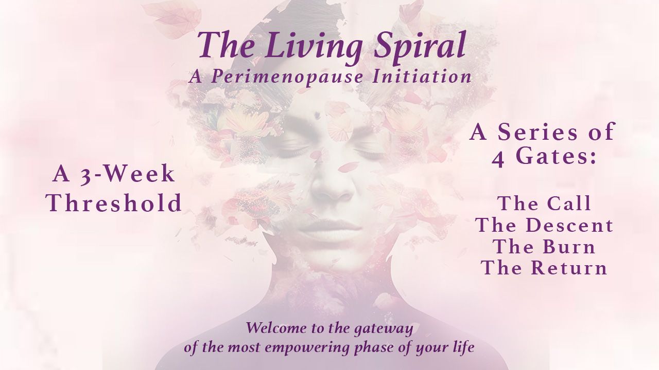 The Call is the first gate in The Living Spiral, a ceremonial journey that honors perimenopause as a sacred initiation rather than a pathology. This 3-week threshold series is an intentional container to listen deeply to the body, to honor and name what is unfolding, and to enter an open and safe space to be, without needing to fix, rush, or explain where you are right now.